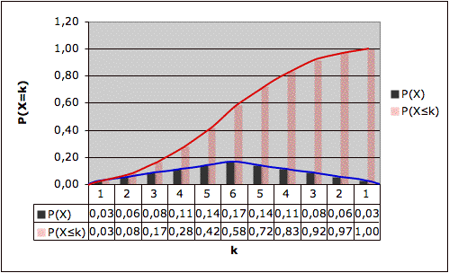 | Verteilungsfunktion | ∑P(X≤k) | ||