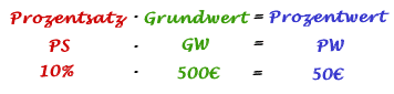 10% von 500Eur = --- von 500Eur = --- * 500 Eur = ------ * 10 = 5Eur * 10 = 50 Eur
